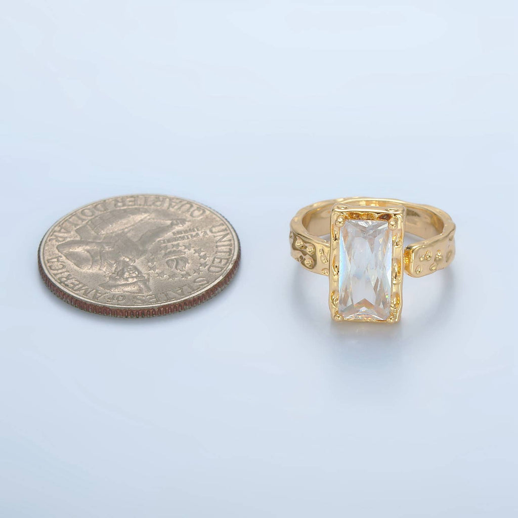 24K Gold Filled Clear CZ Hammered Baguette Band Ring