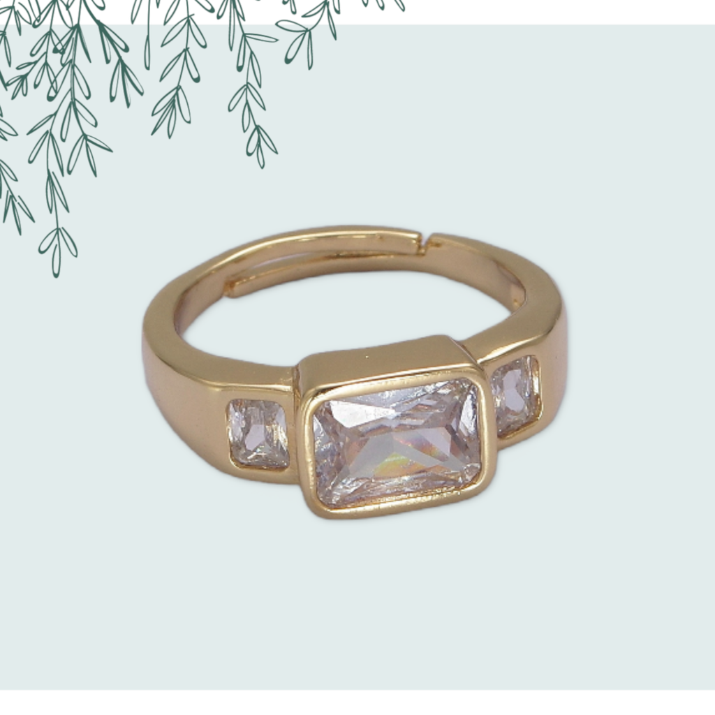 Elegant Big Square CZ Crystal Stone Gold Minimalist Stackable Statement Ring for Women Material: Brass with Real Gold Plated, Tarnish Free Size Adjustable - One size fits most - US SIZE 5.5 Fyi, Hypoallergenic Tarnish Resistant Nickel and Lead Free