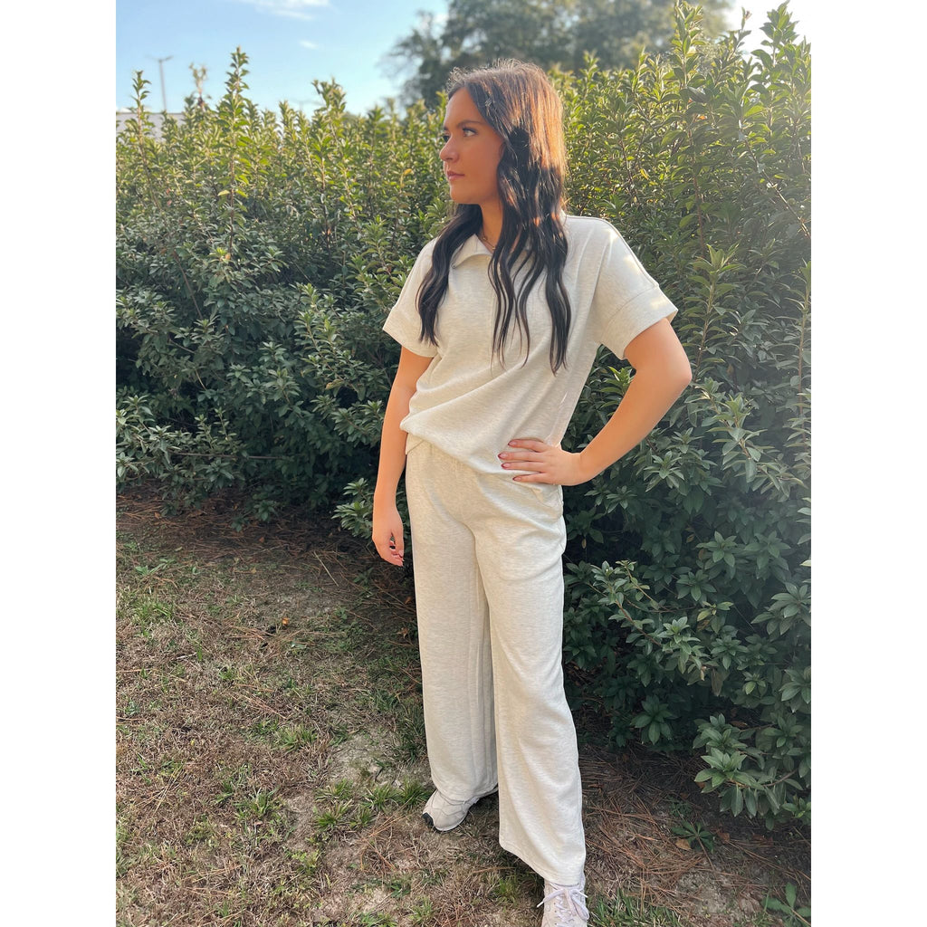Meet your new go-to set: the Scuba High Neck Half Zip Top & Pants Set, where comfort meets contemporary style.