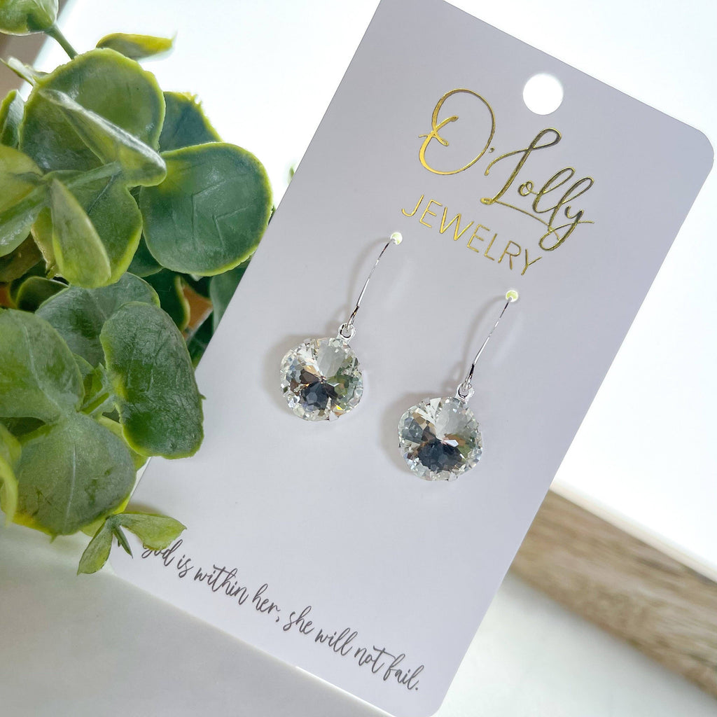 Our O'Lolly 'Remi' Earrings in Silver Clear Stone Dangle are a testament to O'Lolly Jewelry's commitment to unique, handcrafted designs. With a 12mm clear stone, these earrings bring a touch of elegance to any outfit. They reflect the light beautifully, ensuring you stand out. Each pair is a testament to the love and care put into creating O'Lolly's affordable, handcrafted pieces. Embrace the uniqueness of small-town Mississippi with these stunning earrings.