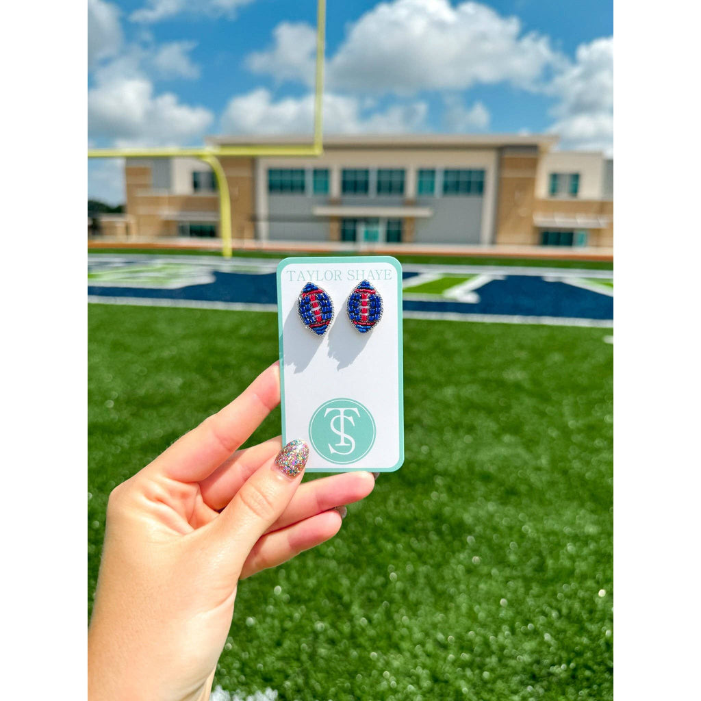 Taylor Shaye Designs - Beaded Blue/Red Football Stud