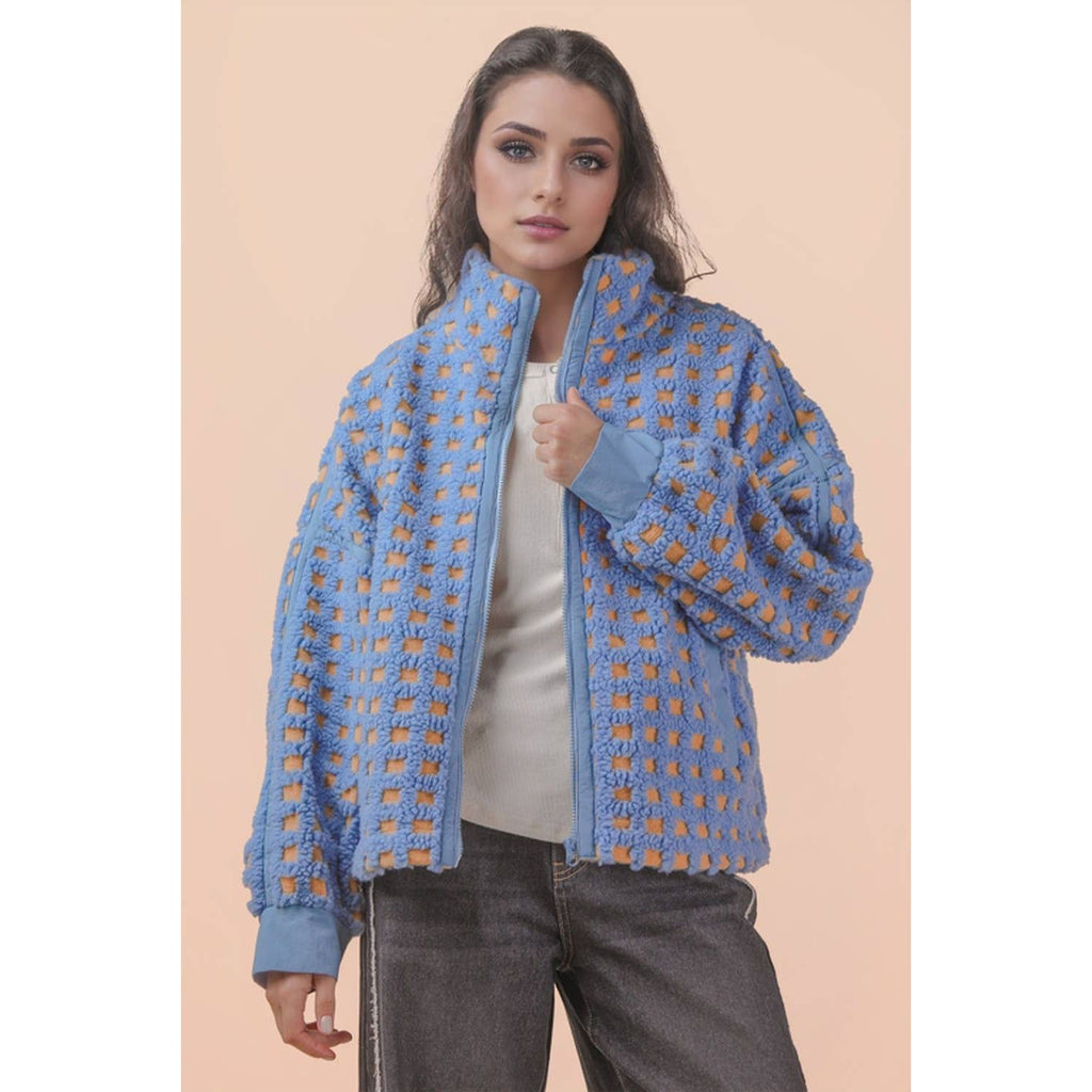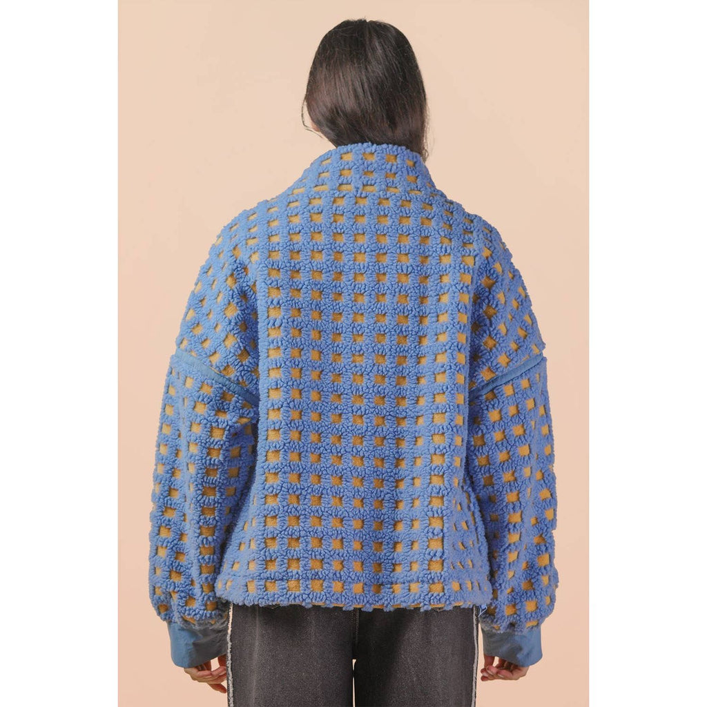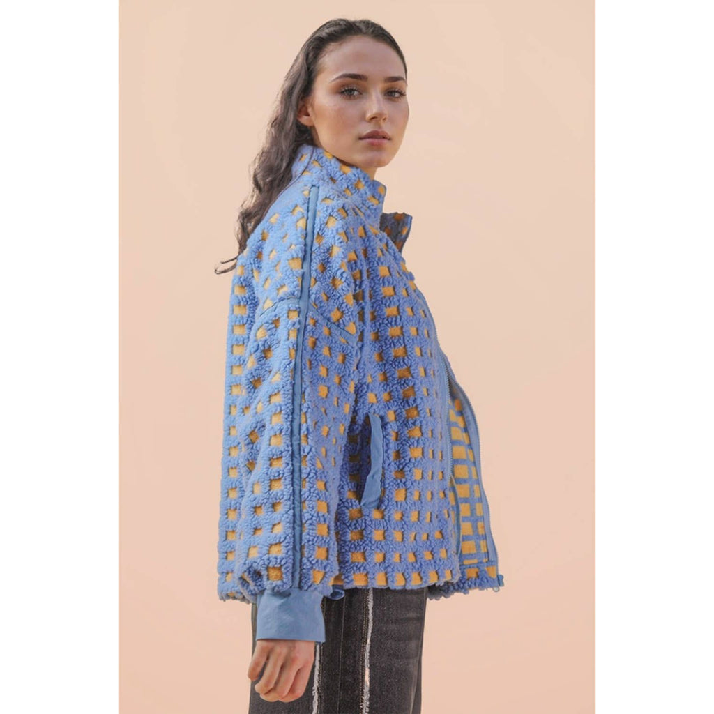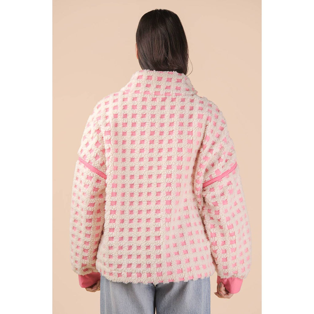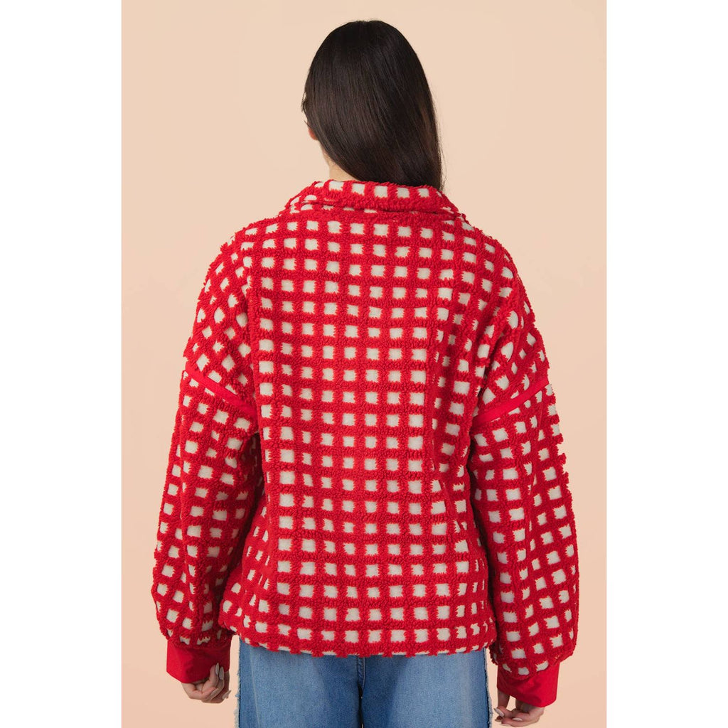 - Oversized Checker Fleece Jacket - Mock Neck - Drop Shoulder - Long Sleeve - Side Pockets - Christmas Outfit (Model height: 5"9", wearing a Small, 2-2-2 Size Ratio, NEW IN) 100% POLYESTER