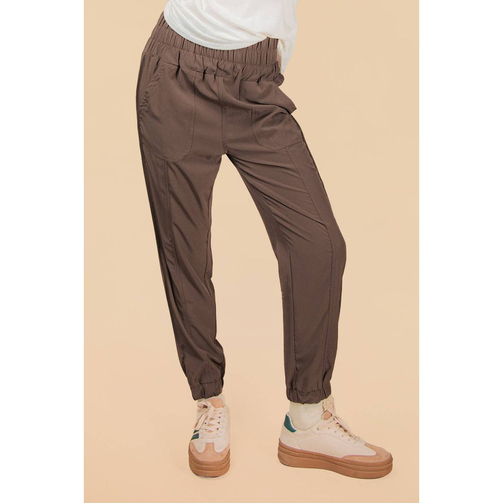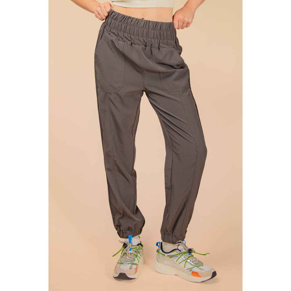 - Wide Elastic Waist Comfy Jogger Pants - Side Pockets - Activewear & Athleisure wear - High Waist