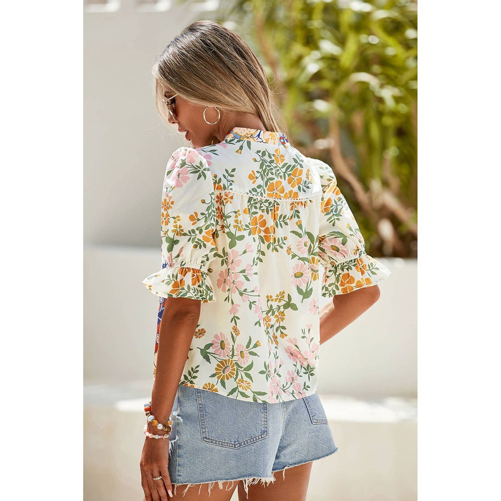 Breezy and effortlessly feminine, the Boho Floral Blouse brings a free-spirited touch to your wardrobe. Featuring a flowy silhouette with delicate floral prints, this blouse is perfect for everything from casual days to dressed-up evenings. Lightweight and flattering, it pairs beautifully with denim, skirts, or layered under a jacket for year-round wear.