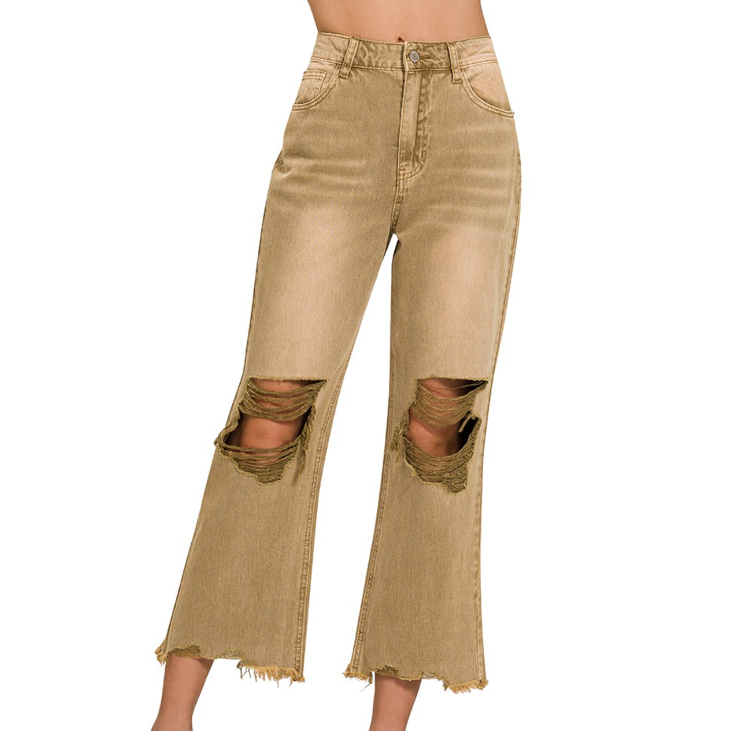 Washed Distressed Camel Cropped Pants by Southern Roots Clothing Company